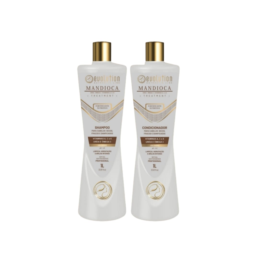 Transforme seus cabelos fracos, secos e danificados em fios exuberantes com o poderoso Kit Nutrição Mandioca Evolution. Este conjunto é formulado para revitalizar e fortalecer seus cabelos, proporcionando uma nutrição intensa e restauradora.